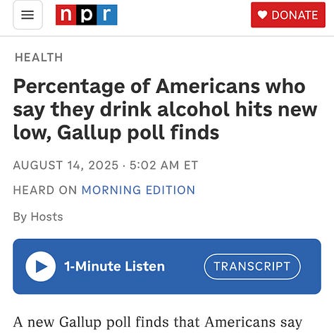 Some of you will recognize this theme from a TGIF I published 18 months ago. The topic has been resurfacing as I hear from people trying to hack their way into drinking less. If you have insights or can relate, I’d love to hear from you via a comment or a ♡ below.